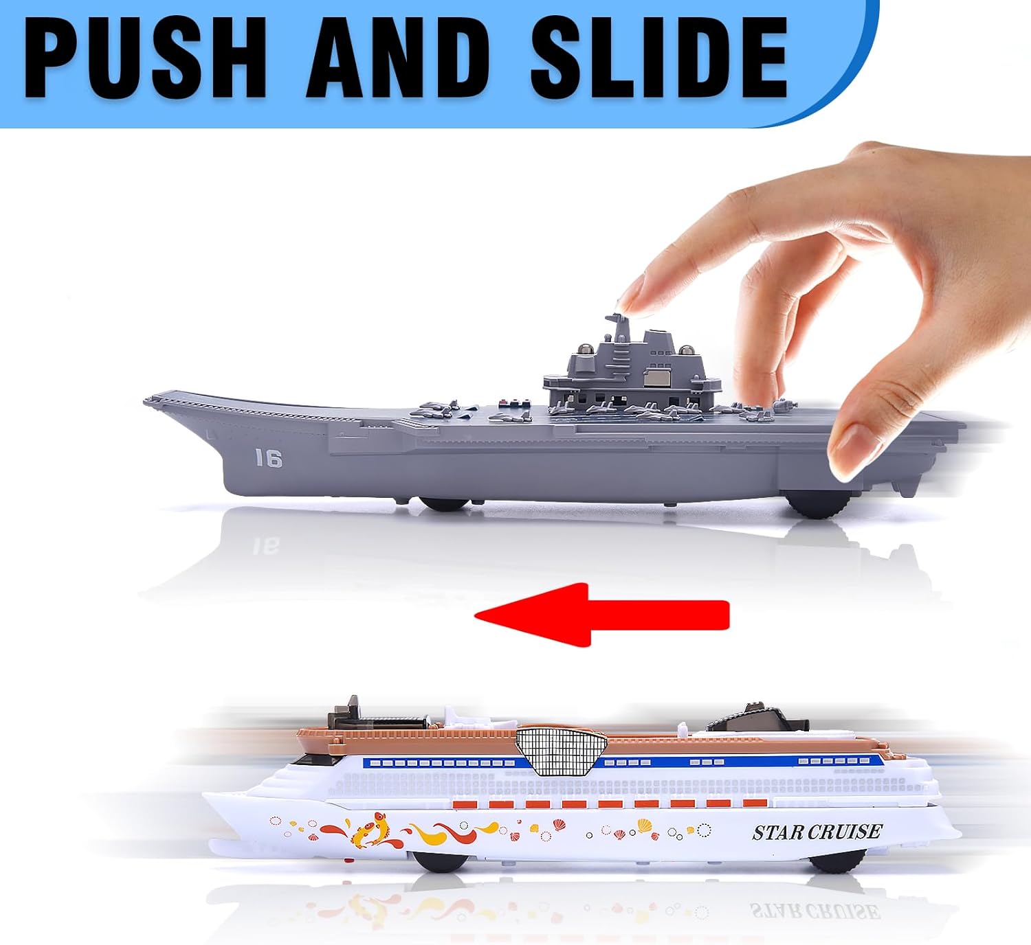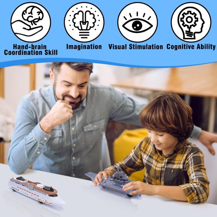 [Inertia-Powered Action] Experience the thrill of true-to-life maritime motion as the vessels glide forward with inertia propulsion. With a gentle push, witness the Aircraft Carrier’s prow cut through imaginary waves and the Cruise Ship glide gracefully, giving your child a taste of genuine maritime action.