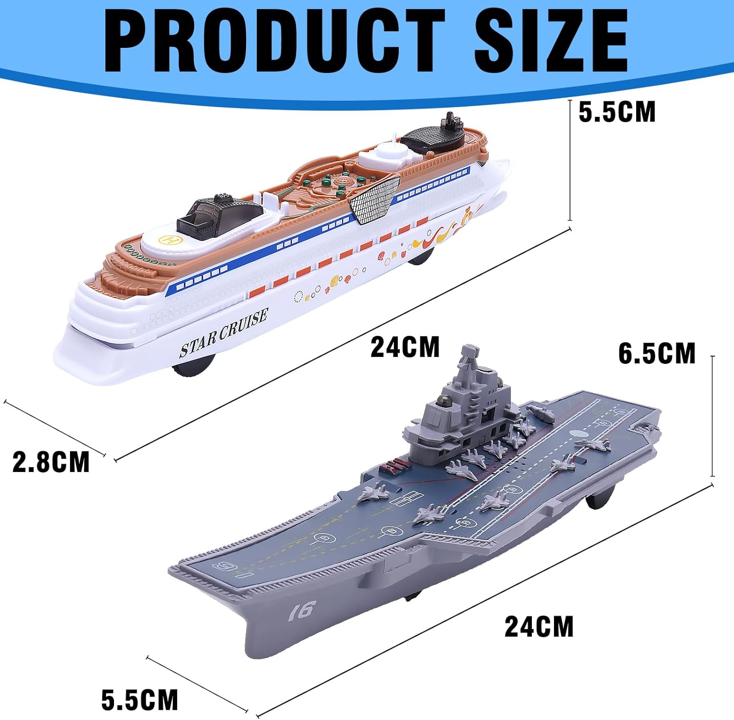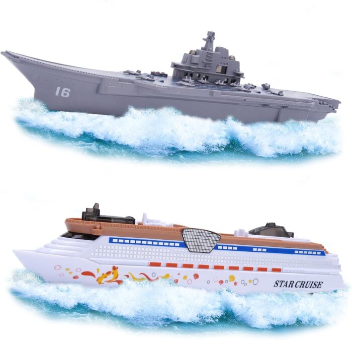 [2PCS Aircraft Carrier Toy Cruise Ship] Whether they’re commanding the aircraft takeoff from the carrier’s deck or exploring the wonders of the open sea aboard the cruise ship, this toy set is designed to stimulate creativity, encourage imaginative storytelling, and provide endless hours of entertainment.