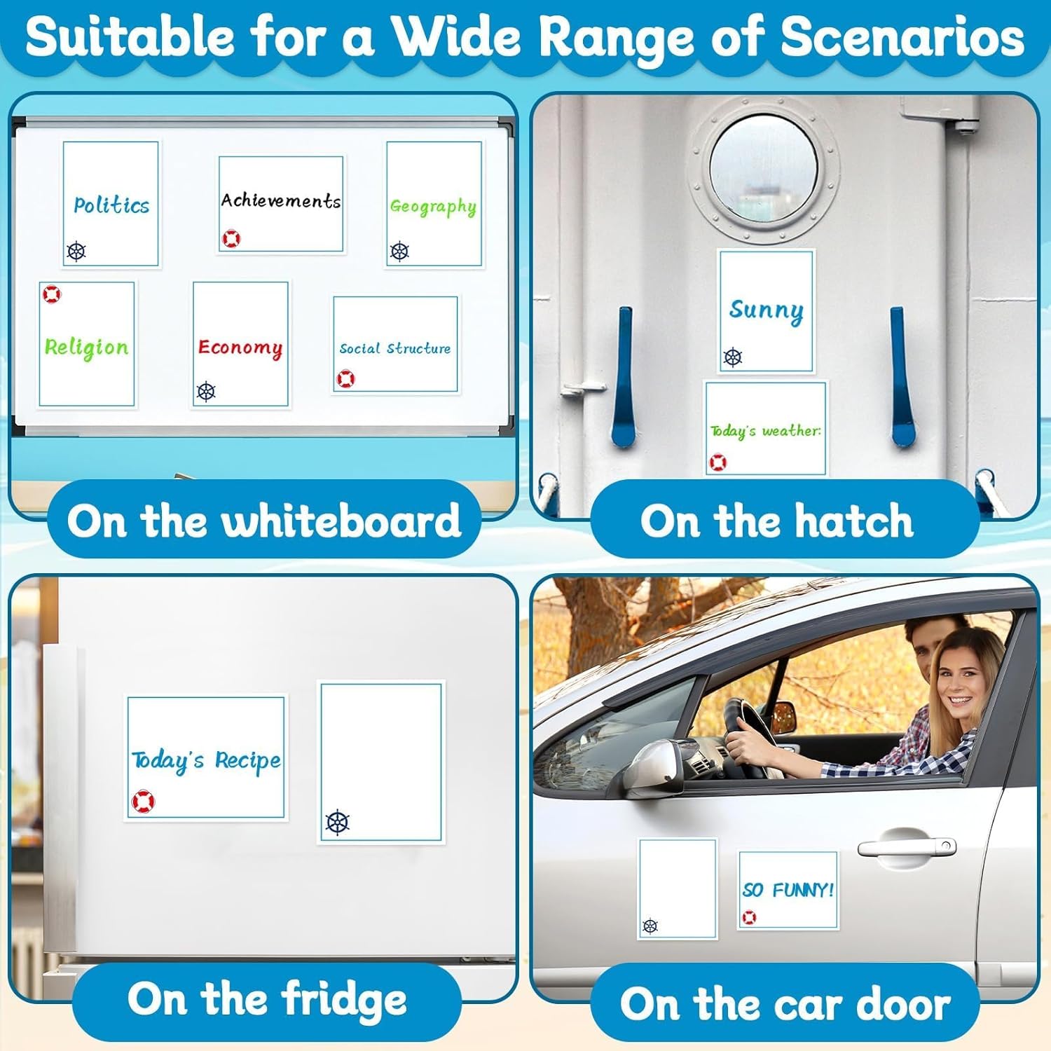 Package includes: You will get a set of 6pcs whiteboard cruise door magnets with 4pcs erasable marker, available in different styles that are both exquisite and visually appealing. These cruise door magnets are ideal for fulfilling your requirements for a cruise theme party. You can also share these cruise door decorations with your friend and family member.