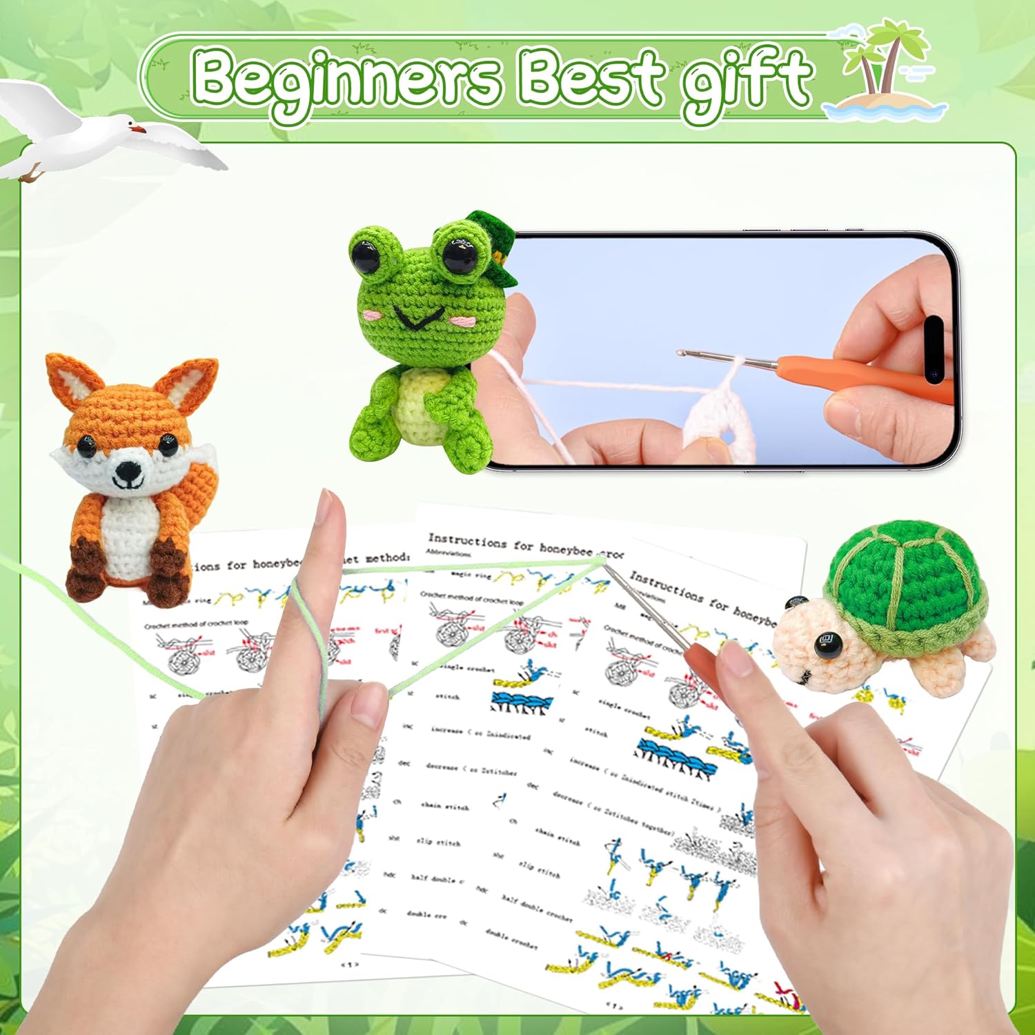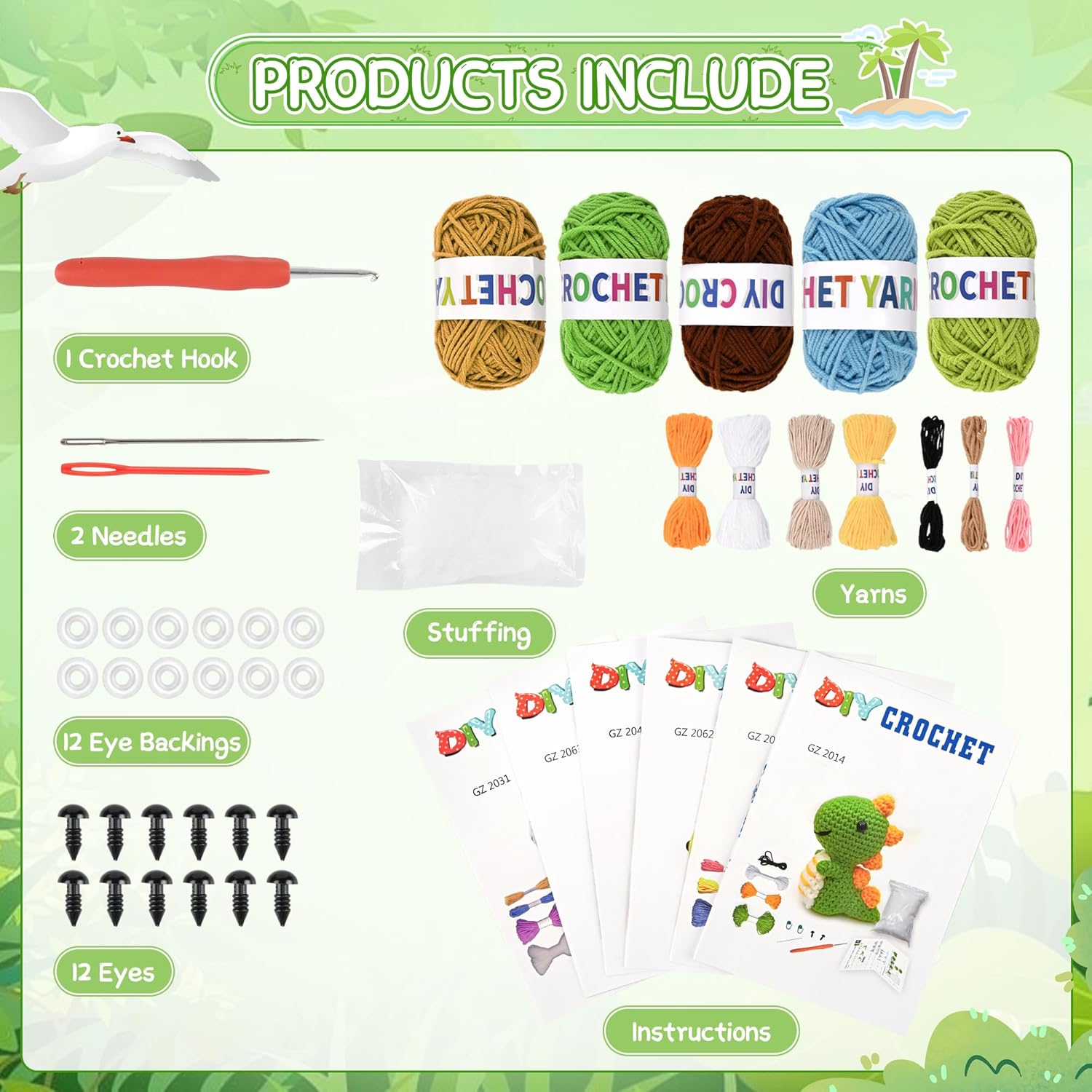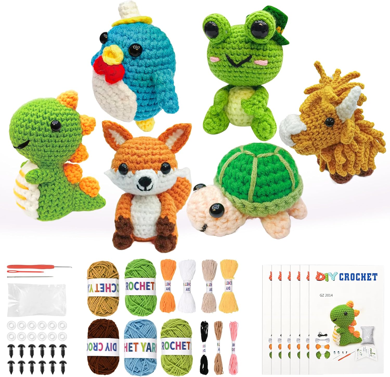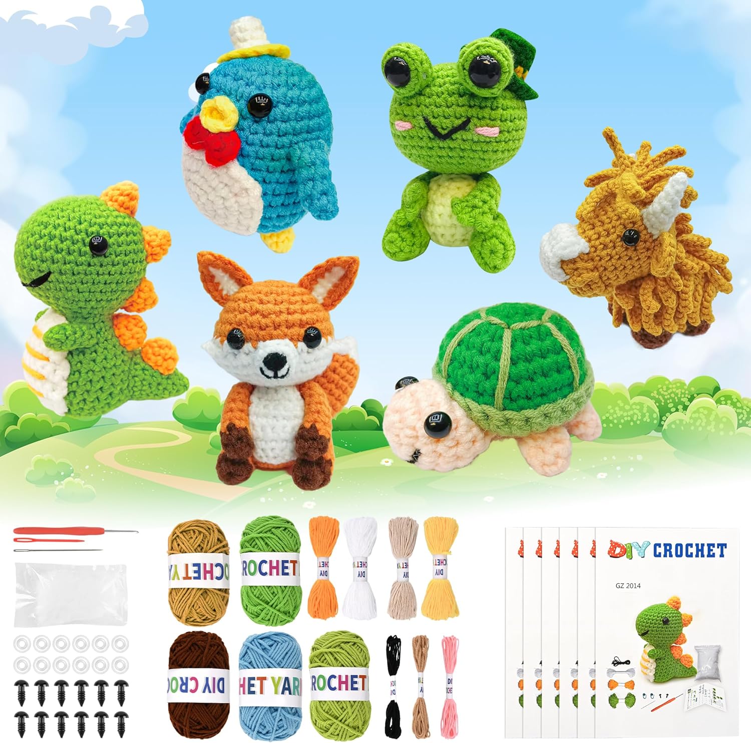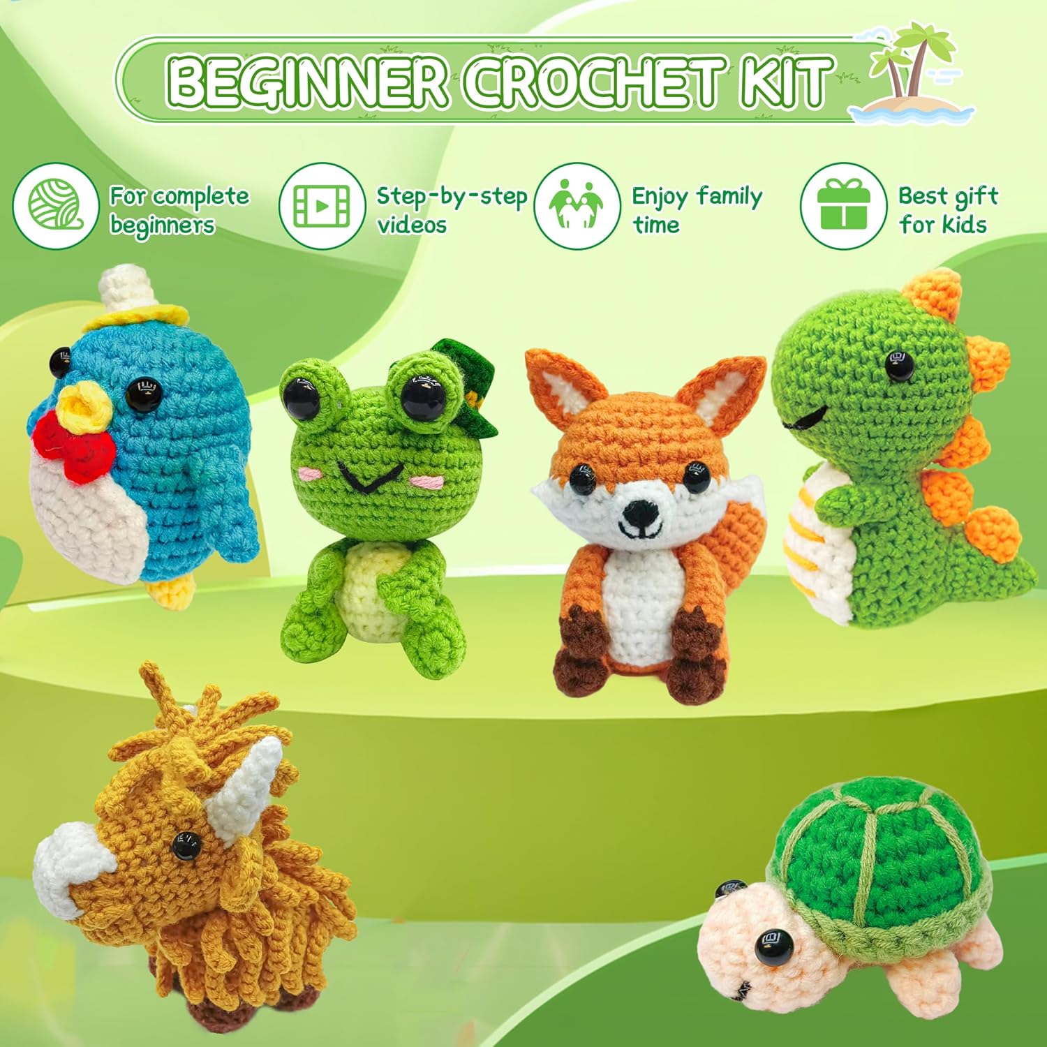 6PCS Crochet Kit for Beginners, 2025 Knitting Kit with Step-by-Step Video Tutorials, Beginner Crochet Kit for Adults, Crochet Animal Kit for Beginners Kids, Complete Kit Included 6 Cute Animals