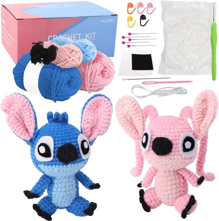 ALODNY Crochet Kit for Beginners,Beginner Crochet Kit for Adults,Knitting Kits Hooks Yarn Set with Step-by-Step Video Tutorials (Blue Pink)