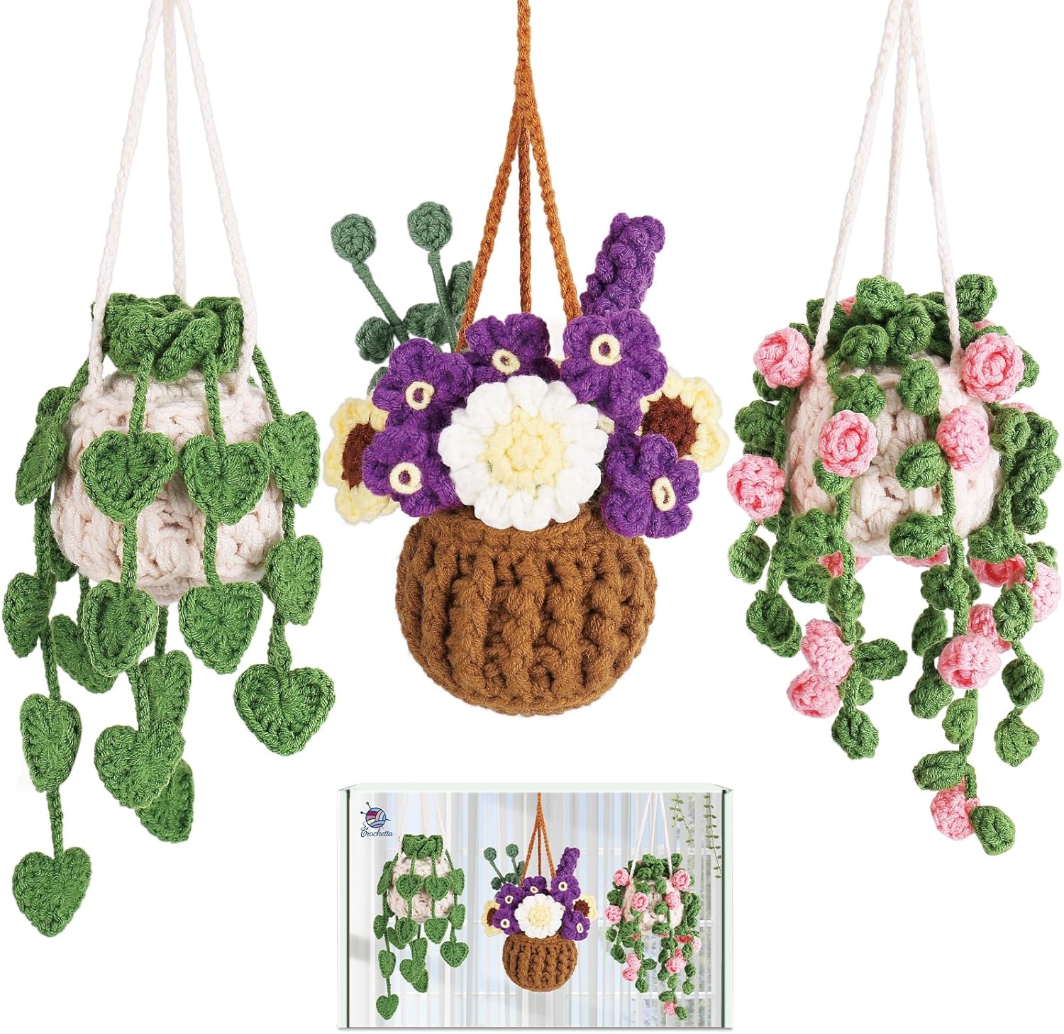 Crochetta Crochet Kit for Beginners, Crochet Kit with Step-by-Step Video Tutorials, Learn to Crochet Kit for Adults Kids, Knitting Craft Supplies, Hanging Plants Home Decor(40%+ Yarn), Small, HP3001