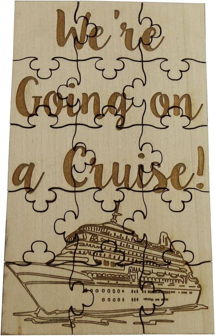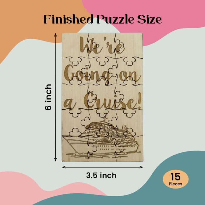 We’re Going On A Cruise – 15 Piece Basswood Jigsaw Puzzle, 6″ x 3.5″ Surprise Vacation Reveal