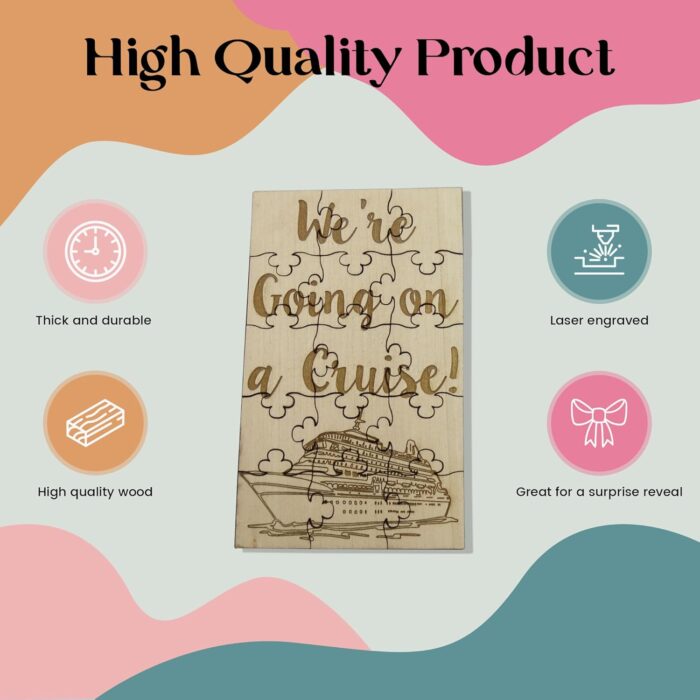 Custom Engraving: FashionJunkie4Life’s surprise puzzle features a charming engraving that reads “We Are Going on a Cruise” for a cruise surprise reveal, adding a personalized touch to your family’s anticipation. This surprise family puzzle strengthens family bonds through shared joy and anticipation.